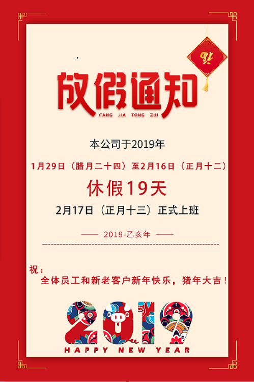 本司2019年春節(jié)放假通知